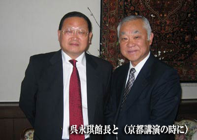 私たちはこの写真集編纂のための現地取材をきっかけに博物館の方々と交流の機会に恵まれました。博物館の館長呉永琪氏をはじめ主要スタッフの方々のお陰で、この写真集を画報的な面白さとともに学術的にも優れた図書として完成させることが出来ました。博物館のスタッフの方々に心から感謝しています。 小さな日中共同事業ですが、兵馬俑という歴史的文化芸術世界遺産をプリント媒体によって日本中にひろく報知する仕事の大きさは計り知れない価値があると確信しています。 ここで簡略ですが呉永琪館長さんのお人柄についてご紹介をしましょう。 1951年北京生まれ 北京育ち 身長170cm 90kg の偉丈夫ですが、中国における考古学の第一人者。秦始皇兵馬俑発掘~博物館一筋という誠意の現場人です。国家科学技術進歩賞を2回受賞されています。 現場としては、主に2号坑発掘の直接責任者、また銅車馬発掘・修復に尽力し現在はとくに彩色兵馬俑の保存技術に取り組んでおられます。また中国のみならずエジプト(プトレマイオス)、ヨーロッパ(ルネサンス)も詳しく研究されています。 日本の味噌汁が大好き、自宅に日本のタタミの部屋を作っているほどの日本びいき人です。 呉永琪館長の理念が分かる言葉:京都講演後のある質問の回答 「兵馬俑のこれからの発掘をどうお考えですか」に対し 『無理に発掘をすることには問題があります。もともと兵馬俑は全て着色されており、芸術的にも強い訴求力を持つ創作物です。兵馬(俑)をはじめ種々の工芸品・考古物の色は空気に触れると酸化によって脱色してしまう。一旦脱色すると復元できなくなり取り返しがつきません。いろいろな有機物反応などについてはまだまだ予測できないことも多いのです。じっくり研究し、発掘前の状況をそのまま保つ方法が開発されるのを待つことが最も重要なのです。それまで、現状を保護することがまず大切。それをするにも最低限の条件として現状の維持・保護のための研究を続けなければなりません。 これは私の個人的な考え方・じつはホンネなのですが、始皇帝を尊敬・敬愛する私としては、発掘より、安らかな眠りをお守りするのが私の役割と考えています。その考えは現在の私の役割と矛盾しているかもしれませんが、これからもこの考え方で取り組んでいきたいと思っています。』(会場から大きな拍手がおこりました) 最後に私たちに対して『秦の兵馬俑写真集の日本での出版に厚く感謝します、そして、その出来栄えは博物館として高く評価致します。この写真集により日本の方々の兵馬俑博物館への関心が一層深まることを願っています』。とお褒めの言葉まで頂戴しました。 |